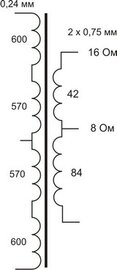 Как вариант. А вообще-то, с точки зрения технологии (по крайней мере моей домашней) гораздо легче намотать трансформатор с первичкой 1400 витков 0,4, чем 2500 0,23. Выходит, что даже если я намотаю много тонкого - оно нафиг не надо, т.к. то, что он воспроизведет 20-30Гц - звука этого все равно не будет. Я, наверное все-таки пойду на эксперимент - есть пара одинаковых магнитопроводов, намотаю по двум стандартам и послушаю на кабинете...