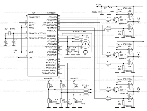 Здравствуйте товарищи! Прошу Вас помочь советом о модификации программы управления бесколлекторным двигателем постоянного тока. Повторил следующую схему: Всё запустилось и отлично работает. Хочу теперь миниатюризировать плату и убрать лишний функционал в виде кнопки запуска и выбора стороны вращения. Опыта в программировании явно не достаёт. Исходный код: Хочу, чтобы при подачи питания движок вращался сразу по часовой стрелке, без внешнего прерывания от кнопки. И даже примерно понимаю, что нужно изменить код где-то в этом блоке: Но, что именно и как понять не могу.