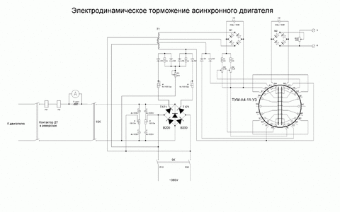 Схема представляет собой мощный выпрямитель с регулированием тока (75А и 120А для разных двигателей). Необходимость возникла из-за выхода из строя на одной из подъемных машин тороидального магнитного усилителя (ТУМ на схеме). Замены нету, информацию про эти ТУМы нашел на сайте музея электронных раритетов _https://www.155la3.ru/magnit_amplifier.htm.