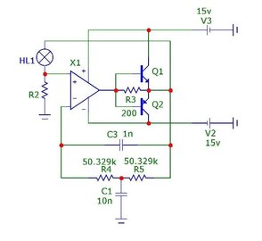 Wal Опубликовано 3 Мая, 2015 в 20:26 Автор Жалоба Поделиться Опубликовано 3 Мая, 2015 в 20:26 Я мимоходом пробегая в спешке замечу: схема из 25 поста завелась с лампочкой почти как у автора. Только частота не регулируется. Видать, нарушается режим по постоянке, если потенциометр крутить и генерация срывается. Эксперименты продолжаются. (лампочки у меня все низкоомные: 15...50 Ом холодные) Вячеслав, все верно, у меня также набросана и испытана в системе моделирования схема на современной элементной базе. Не знаю, дойдут ли руки до практической реализации. Так дайте схему, если детали найдутся в наличии, то соберу, проверю. Ссылка на комментарий Поделиться на другие сайты Поделиться