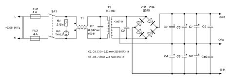 vladiv Опубликовано 17 Июня, 2015 в 10:33 Жалоба Поделиться Опубликовано 17 Июня, 2015 в 10:33 Делал в те незабвенные годы несколько таких усилителей. До сих пор работают, только в фильтре питания заменил электролиты. Электролитический конденсатор в цепи С6 , ООС, ставь хороший,полярный, неполярный, хотя на слух незаметно. От него зависит хаотичное колебание постоянки на выходе. У меня, после прогрева можно было выставить +/- 5 миливольт.И на входе "сухоЙ" поставь. 6,8-10 мкФ, вот он сразу добавит ясности. Ну переменники надо будет потом заменить на постоянные, предварительно мультиметром измерить и подобрать. Недавно снова решил повторить но на импортных транзисторах. Что-то у меня пошло не так. В холостую без нагрузки по осциллографу всё отлично, с нагрузкой какой-то перекос. Дело , наверно в транзисторах, делал на выпаянных из БП РС и из оставшегося "мусора" Ссылка на комментарий Поделиться на другие сайты Поделиться