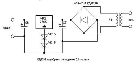 cbafrunze Опубликовано 31 Октября, 2015 в 16:23 Жалоба Поделиться Опубликовано 31 Октября, 2015 в 16:23 (изменено) А если взять стаб 7806? Постоянным током, накалы питают в том случае, когда требуется минимальный уровень фона переменного тока.Например, ламповые входные каскады УНЧ, микрофонные усилители, высокочувствительные каскады измерительной и медицинской аппаратуры и пр. Такая тема на форуме уже была "Стабилизированный накал ламп" https://forum.datagor...nnii-nakal-lamp Схема от туда. Изменено 31 Октября, 2015 в 16:25 пользователем cbafrunze Ссылка на комментарий Поделиться на другие сайты Поделиться