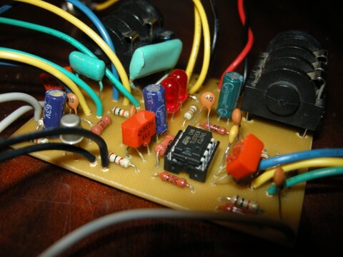 Гость mick63 Опубликовано 13 Ноября, 2010 в 19:56 Жалоба Поделиться Опубликовано 13 Ноября, 2010 в 19:56 Первая примочка не заработала. Вторую собирал более внимательно, прозвонил все дороги, после впайки каждого элемента проверял на то, как он припаялся, закончил, врубил и..... тишина, думал не получилось, но пошевелил микруху( она у меня на панельке) и всё заработало- звук пошел и диоды загорелись. Правда оказалось, что вместо одного красного диода я припаял зелёный, а диод который означает включение примочки не горит, байпас правда работает. Ещё из косяков- два переменных резистора работают как регуляторы звука, т. е. выключают и увеличивают его. Фото выложу потом, правда пока она без корпуса. Ссылка на комментарий Поделиться на другие сайты Поделиться