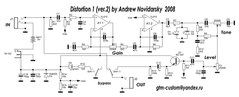 Гость mawrock Опубликовано 3 Января, 2011 в 16:20 Жалоба Поделиться Опубликовано 3 Января, 2011 в 16:20 Версия 2.0: - конденсатор 2n7 заменен на 4n7, что улучшило работу ручки тембра :smile: - millenium bypass :smile: - применены импортные полевые тразисторы J201 - и конечно же новая более удобная ПП :smile: GTM_DS_1_VER.2.0.rar Все детали ставим согласно ПП :smile: это типа модификация злого дисторшна ? а по звуку как он, можно сэмплы? Ссылка на комментарий Поделиться на другие сайты Поделиться