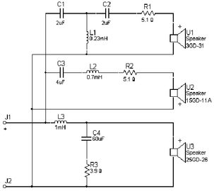 Dimonos Опубликовано 13 Ноября, 2012 в 15:39 Жалоба Поделиться Опубликовано 13 Ноября, 2012 в 15:39 (изменено) Угу. Фильтр второго порядка так? Нет не так. Нч-1порядок. СЧ 1 порядок, Вч -3 порядок. (C4и R3 в подсчет порядка не входит, это цепь компенсации). Вот это по схеме 1mH,а у меня L3 на катушке написано 02. В катушке на НЧ , аналогично схемы как L3, 0.2 мГн быть не может. Вы не надписи смотрите, а где стоит. Емкость на входе фильтра СЧ действительно маленькая (4μF), возможно потому, что там R2 еще есть... Смутило то,что у меня подключено всё по фазе. Ну где то в фазе, где то наоборот, при таком построении допускается и так и так. Высчитать невозможно, это на слух. А у Вас возможно схема другая... Заводские документы и схема на данную акустику _https://www.donex-ua.-мы не распространяем ссылки на [народ.ру]-/el/as/manual25as326.htm Изменено 13 Ноября, 2012 в 15:58 пользователем dimonos Ссылка на комментарий Поделиться на другие сайты Поделиться