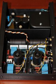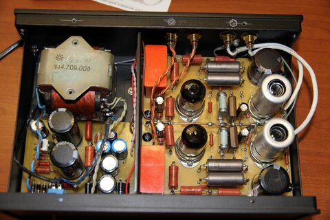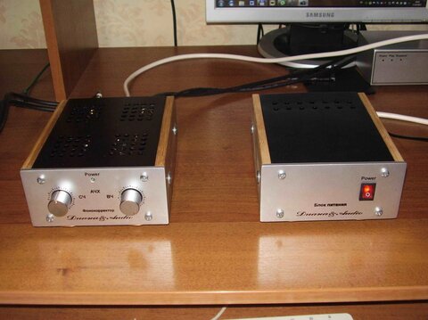 Гость 372 Опубликовано 3 Февраля, 2010 в 16:14 Жалоба Поделиться Опубликовано 3 Февраля, 2010 в 16:14 (изменено) По той же идеологии, что "на 6н2п" сделан этот, на нувисторах. На плате катодные конденсаторы избыточные, 1000uF - просто под руку попали низковольтные LowEsr - их и поставил. Встроен корректор в Электронику ЭП-030. Благо места там было - вагон и тележка. Выходные конденсаторы - на шасси, хомутами. Бо большие и железные. Заинтересовался нувисторами после статьи проф. Гурского. _https://rh.qrz.ru/ZIP/rh406_limited.pdf Тот корректор собирал. В 3-х экземплярах. Пришлось немного пересчитать RIAA, но и в исходном виде звучит он внятно. Задержка подачи анодного, активный дроссель, выпрямленный стабилизированный ток накала и всё такое... Собственно, и здесь он упоминался. _https://forum.datagor.ru/index.php?showtopic=233&view=findpost&p=6223 Ламповые корректоры и предусилители, в отличие от оконечных усилителей, хороши тем, что в питании можно использовать маломощные 10-12 ваттные трансформаторы. Анодный ток небольшой, не превышает 20-30 мА на оба канала, по накалу - 0.6-0.9А. Я и использовал самые раскитайские трансформаторы от выносных БП сетевых свитчей и хабов - те, что 7.5В 1-1.5А на Ш16х24-28 (ну был запас, что тут поделаешь). На накал - без переделки. На анодное - тупо разбираются 2 идентичных трансформатора, вторичные катушки снимаются, сетевые катушки ставятся на один сердечник. Они же у китайцев разборные, обмотки намотаны на отдельных катушках, вставленных в кассету. Получается на вторичной обмотке - порядка 200-205В. Выпрямленное - порядка 260-270В под нагрузкой, лишнее роняется на активном дросселе. Изменено 3 Февраля, 2010 в 16:27 пользователем 372 Ссылка на комментарий Поделиться на другие сайты Поделиться