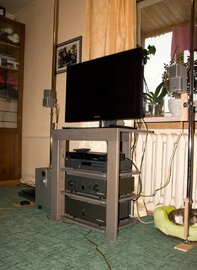 Dimonos Опубликовано 27 Января, 2013 в 10:51 Автор Жалоба Поделиться Опубликовано 27 Января, 2013 в 10:51 Спасибо на добром слове! По хронологии сначала появился NAD( старенький уже аппарат), потом стал делать УМ ( в его теперешнем виде), потом предвар (спустя полгода, год). Pioneer самый последний куплен. По хронологии понятно, почему я выбрал серый цвет усилителей, подкрадывался к NAD. Получилось не один в один, но близко. Ну и чтобы совсем рассектетиться: недавно купил бу. дом. театр (купил недорого и ради цифровых входов (есть оптика и коаксиал). Т.к. колонок уже давно нет, а новые еще не сделал, вот слушаю через эту технику ( САБ и 5 маленьких колонок). Могу сказать, к моему удивлению, что звук очень неплох, колонки очень добротные, несмотря на пластик. САБ вполне можно назвать сабом, а не бубнелкой. Некоторые DTS CD звучат очень впечатляюще. (не без недостатков конечно...) Теперь могу выдать фото всего целиком, ( раньше постеснялся). Пока временно (кто его знает...) все техническое муз. хозяйство имеет такой вид: Ссылка на комментарий Поделиться на другие сайты Поделиться