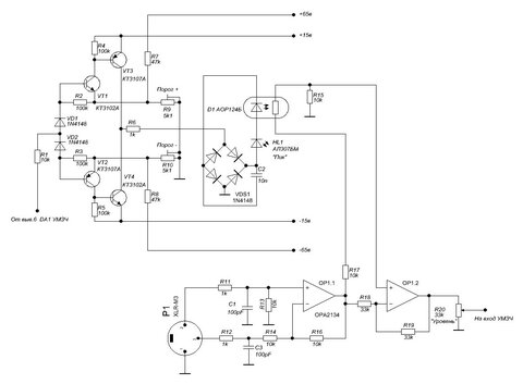 Гость victors Опубликовано 6 Октября, 2011 в 14:20 Жалоба Поделиться Опубликовано 6 Октября, 2011 в 14:20 alex.co Спасибо за схемки, платку. Я так понял что плата сделана для этой схемы, только добавлены 2 тошибы в параллель в отличие от оригинала где одна тошиба ? Впринципе схема должна запуститься с пол пинка, сегодня мож попробую ее запаять на макете, с осцилом полазить по ней чтоб получше понять какие процессы происходят там при работе, при действии защиты и тд., как она отреагирует на КЗ.victors с диодами интересная тема, но для ее реализации надо понять как действительно работает эта защита Уважаемый Slayer, защита в приведённой схеме, работает именно так, как Вы описали. Может быть, кто то понимает её работу безмерно глубоко, а мне добавить к описанию нечего. Возьмите для выхода пару КТ818 КТ819, подайте +/-20В питания, в эмиттеры транзисторов, поставьте резисторы, сопротивление 2 - 4,7 Ом, включите, и настройте без нагрузки (0 на выходе и приемлимый ток покоя). Потом включите нагрузку, без сигнала (заземлённый вход) проверьте настройки. После этого, подавайте сигнал и сморите, какой уровень напряжения будет на датчике тока. Транзистор защиты включите так, как показано на схеме (в базу резистор 300 - 510Ом). Проверьте, как работает защита при наряжении на датчике тока 0,6В. Потом параллельно датчику, поставьте резистивный делитель на два. И или уровень входного наряжения повышайте или уменьшите сопротивление датчика тока, так, чтобы в районе ограничения по питанию, напряжение на датчике было 1,2 В. Проверьте, как работает. Потом делитель уберите и включите диод и последовательно с ним резистор из опыта №1. Если рабтает, Установите такое выходное напряжение, чтобы защита ещё не включалась, и начинайте греть феном. Сначала только транзистор защиты и диод, а потом, и выходные транзисторы тоже. Сравнивайте результаты. :smile: Ссылка на комментарий Поделиться на другие сайты Поделиться