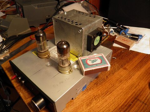 metrolog Опубликовано 11 Июля, 2015 в 14:49 Жалоба Поделиться Опубликовано 11 Июля, 2015 в 14:49 (изменено) Приобрел себе наушники Beyerdynamic dt 770 pro и под них был собран усилитель на 6Н6П. Трансформатор был взят от старого самопишущего прибора серии КС, в последствие выяснилось, что у примененного силового трансформатора падает под нагрузкой напряжение на анодной обмотке, и на выходе выпрямителя получается 270в, что ниже требующихся 300в. Усилитель вроде работает, но в наушниках слышен небольшой 100Гц фон. Пониженное напряжение питания уже не позволяет ставить электронный фильтр. Поскольку других трансформаторов у меня не было (и обмоточных проводов тоже :smile:) , в этой ситуации было принято решение проверить возможность применения ИБП на этом месте. Делать что то серьезное не было терпения, поэтому взял попавшуюся под руку 50Вт ТОШИБРУ. На выходе получились нужные напряжения: +315в и +6,3в. После электронного фильтра на анодах получается как раз +300в. На накал поставил диоды HER307 (3А, 1000в) с небольшими радиаторами. Выяснилось, что даже с радиаторами диоды нагреваются так, что не терпит рука, хотя накал берет всего 1,5А. Странно, почему? Все работает, но на всякий случай поставил небольшой вентилятор. После проделанной работы получил то, чего добивался - достаточность питания и полное отсутствие шумов в наушниках. Усилитель, кстати, очень хорош, рекомендую :smile: Получилось конечно коряво, но зато эксперимент прошел успешно! Изменено 11 Июля, 2015 в 15:04 пользователем metrolog Ссылка на комментарий Поделиться на другие сайты Поделиться