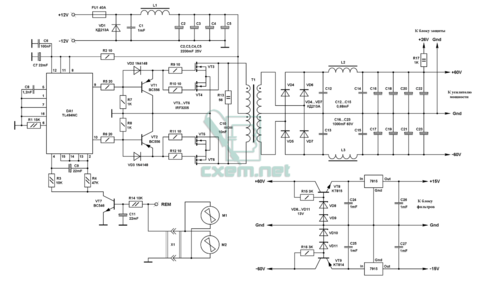 собрал усилитель МОСФИТ с одной парой оконечников , запитываю его автомобильным ПН который сам запитывается от аккумулятора .