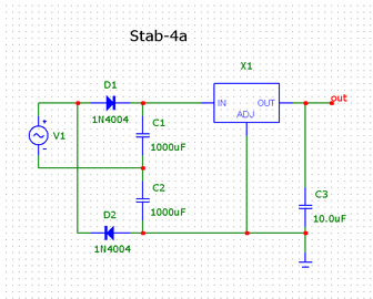 Схема с одним трансформатором. Выпрямительные диодные мосты подключаются к вторичной обмотке через дополнительные конденсаторы. Использовать схему Латура как два однополупериодных выпрямителя следует с осторожностью. При разнице в нагрузке по плюс/минусу, появляется постоянная составляющая тока во вторичной обмотке, что может привести к частичному насыщению сердечника трансформатора, и его перегреву. PS-3.ZIP